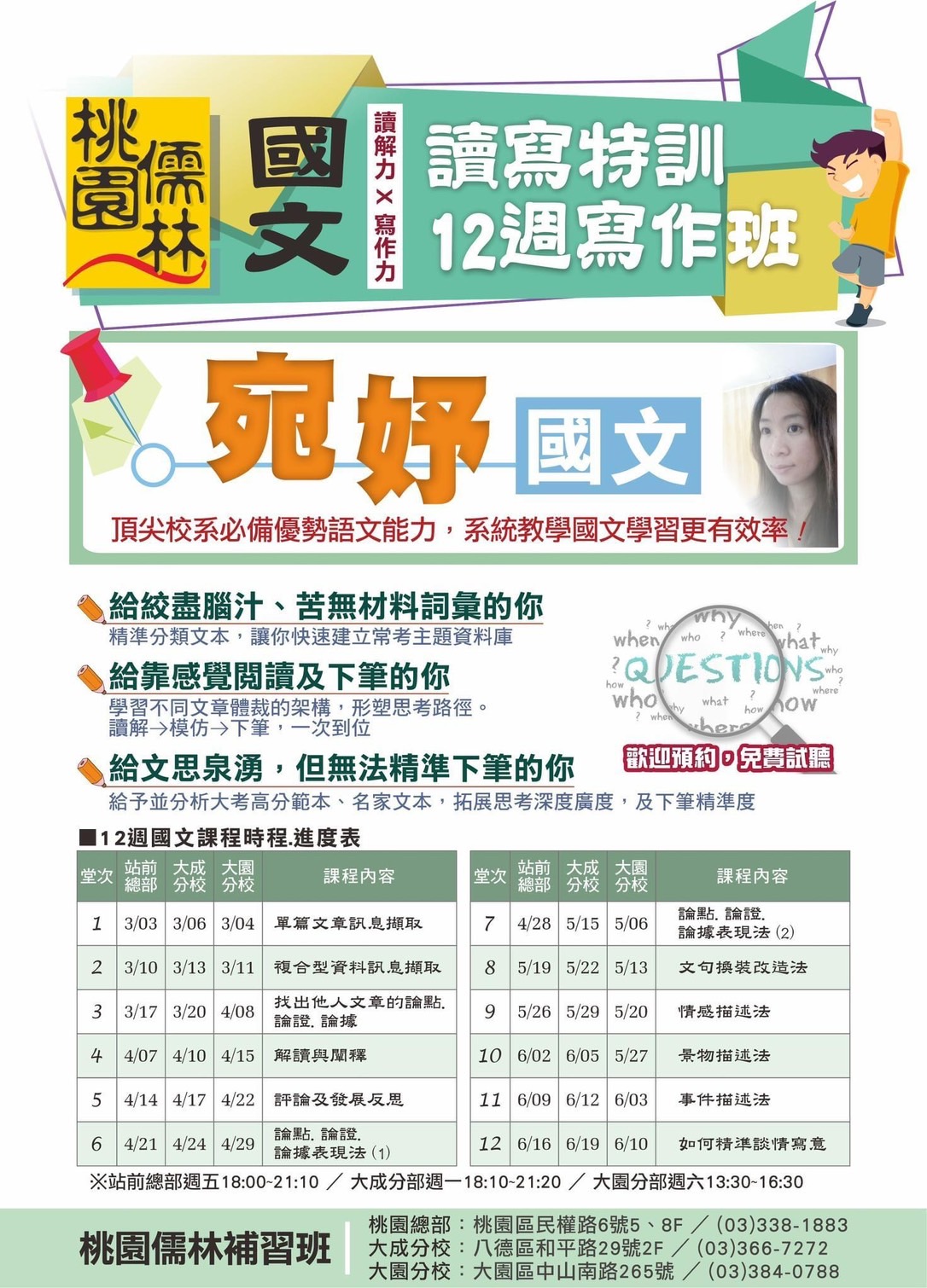 青埔大園地區最專業的高中升學機構,聯手桃園儒林補習班,打造高中各科專業教學,提供市區資源!